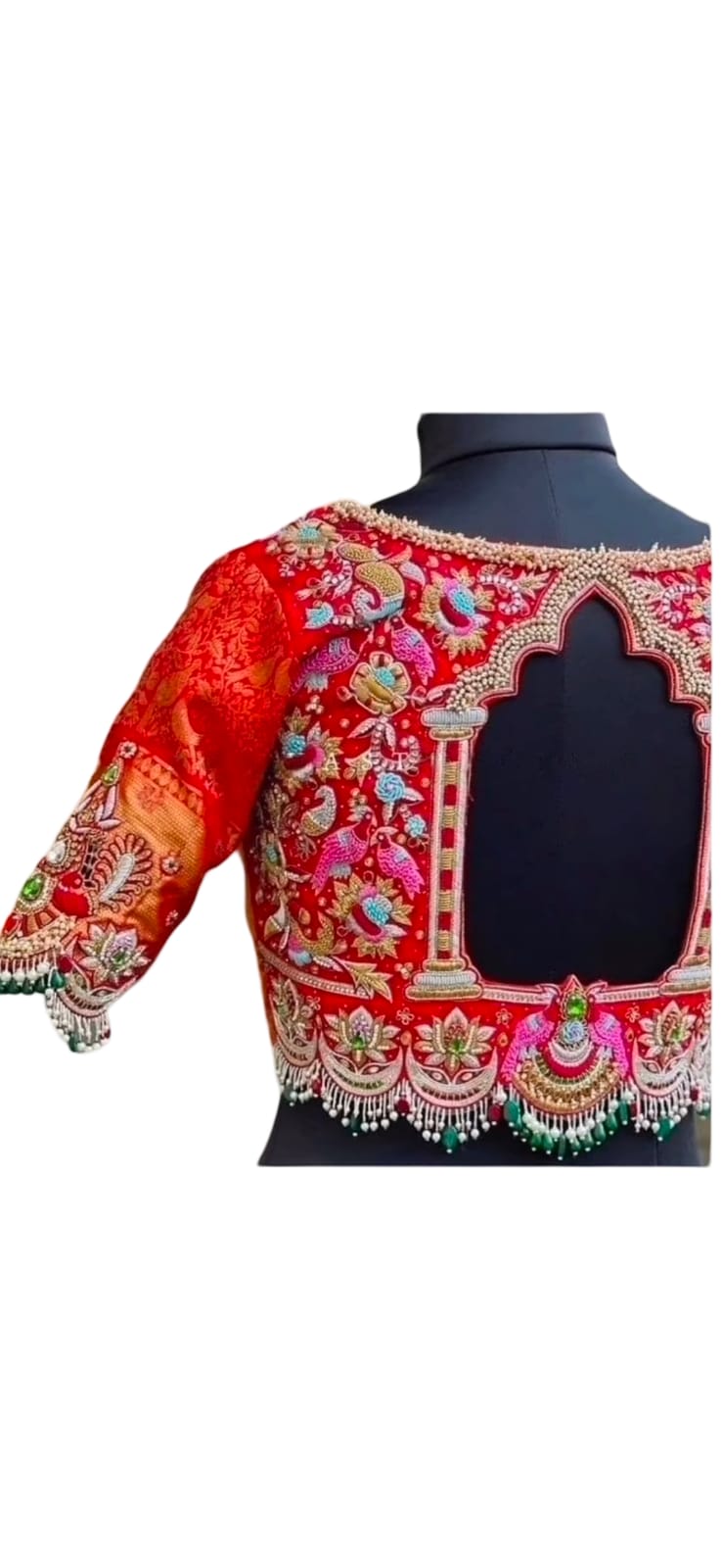 Elevate your wedding attire with the Maggam Work Blouse, designed exclusively for women who wish to blend tradition with elegance. Full all over work and beautiful bridel design.This blouse is a masterpiece of intricate hand embroidery, featuring motifs inspired by floral patterns, peacocks, chandbalis, and more. Ideal for pairing with silk sarees, lehengas, or wedding ensembles, it brings unparalleled grandeur to your bridal look.Maggam Work Blouse Designs for women wedding Crafted with premium fabric and adorned with fine maggam artistry, this blouse ensures you radiate timeless beauty on your special day.